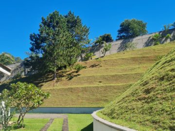 As três suítes garantem privacidade e conforto a todos os moradores, enquanto a varanda que abraça a casa proporciona uma conexão constante com a área externa e o paisagismo impecável.