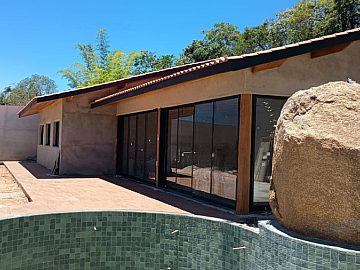 A infraestrutura se completa com um banheiro social, despensa, lavanderia e um banheiro exclusivo para a área da piscina.