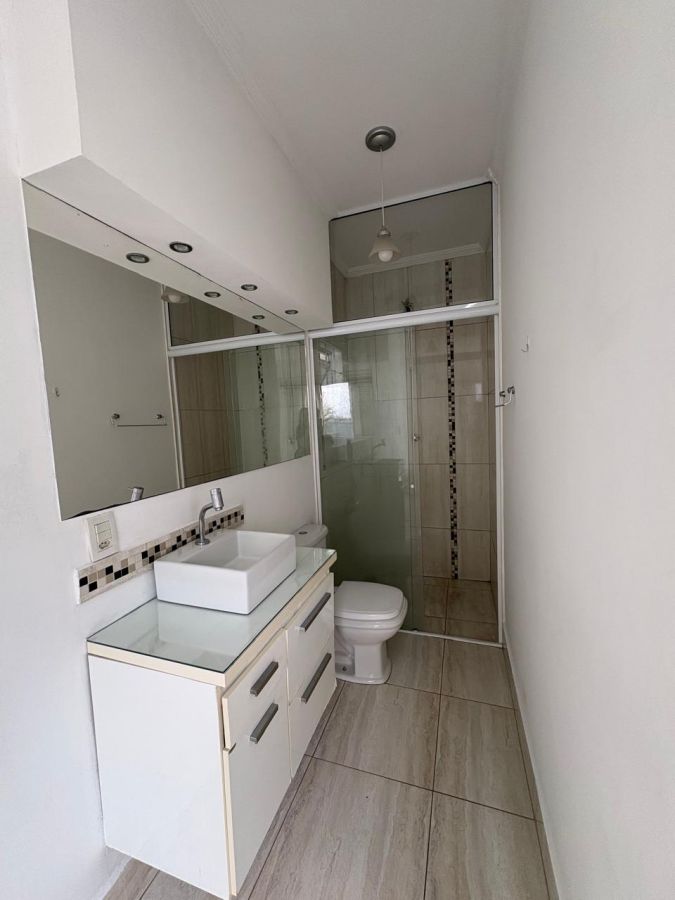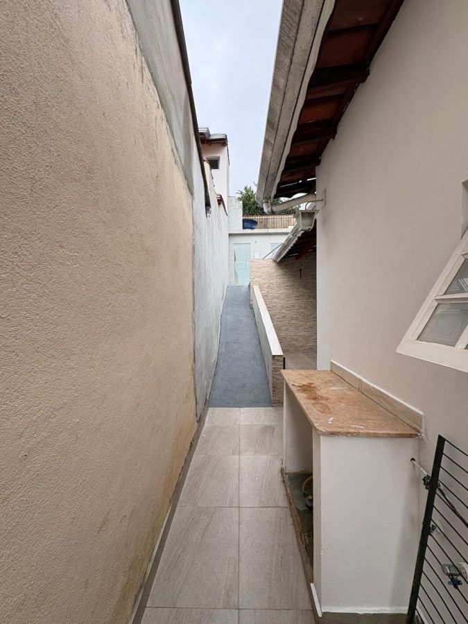 A área externa conta com um corredor lateral que se abre para área de estar, um quintal privativo e uma lavanderia funcional. A garagem coberta com portão eletrônico completa o pacote de comodidades.