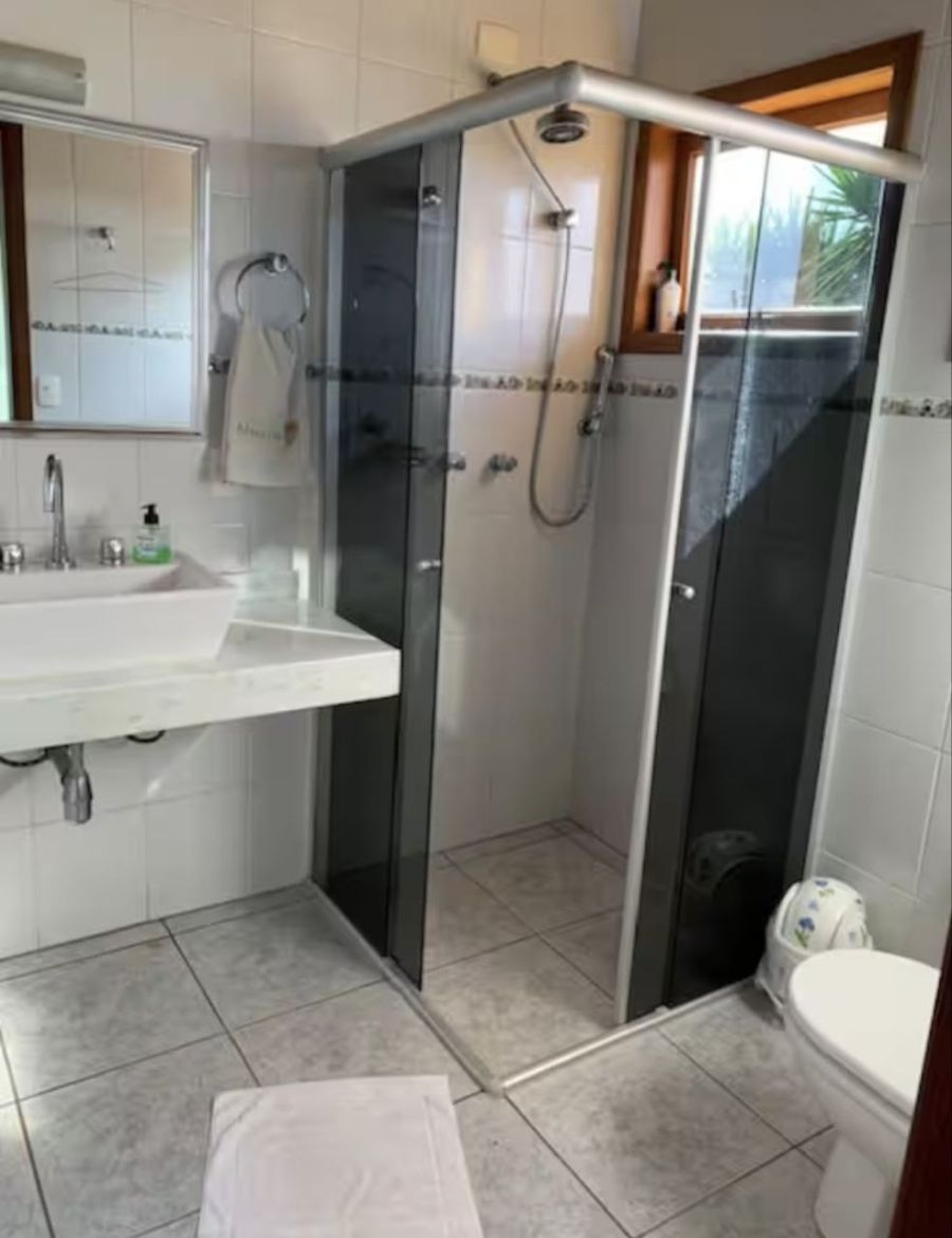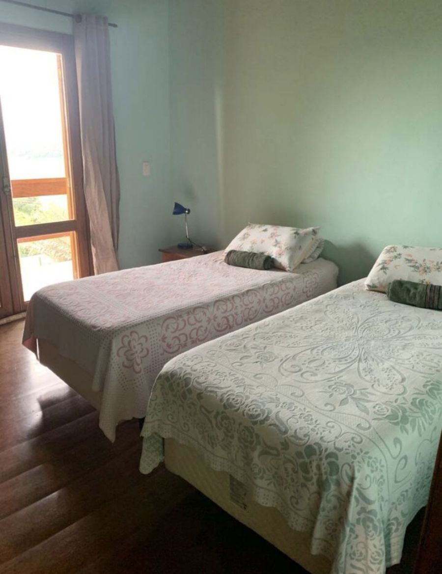 Com um design que privilegia o conforto e a vista, a casa foi projetada para acolher. São três suítes amplas e confortáveis, com aquecimento central de água. Uma delas, no térreo, oferece praticidade e acessibilidade.