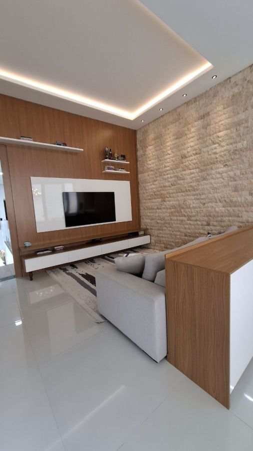 Cada detalhe foi pensado para impressionar e acolher, desde os revestimentos da Portobello até as paredes acentuadas com o charme do Travertino Romano Rockface. É o cenário perfeito para receber amigos e celebrar a vida.